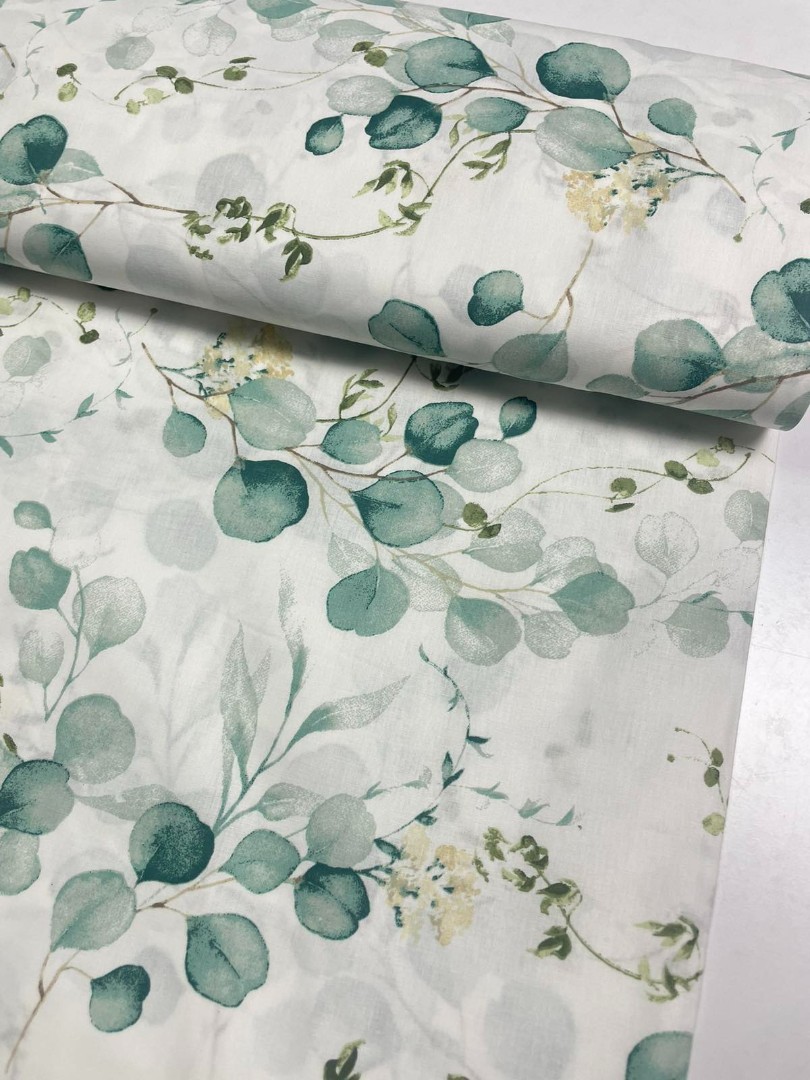 Ранфорс Зелене листя на білому фоні
